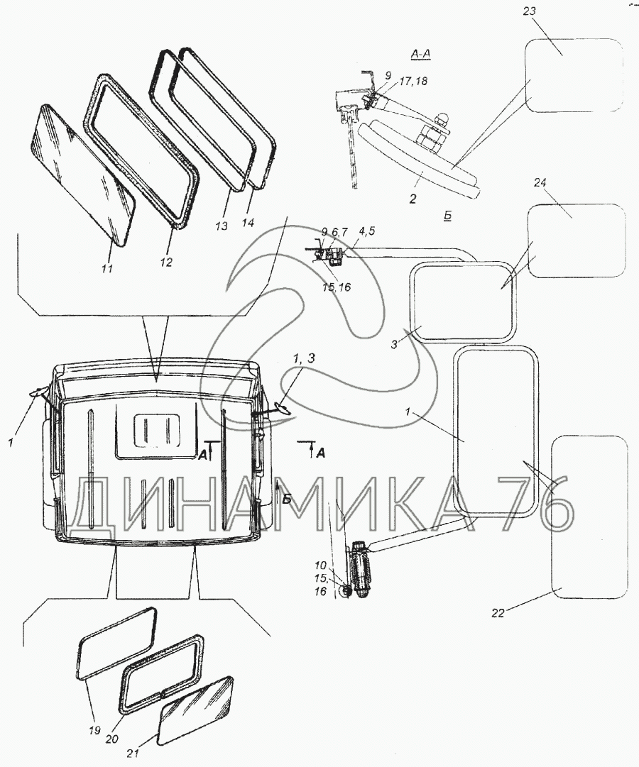 Перечень комплектующих от Окно ветровое, зеркала на 6520