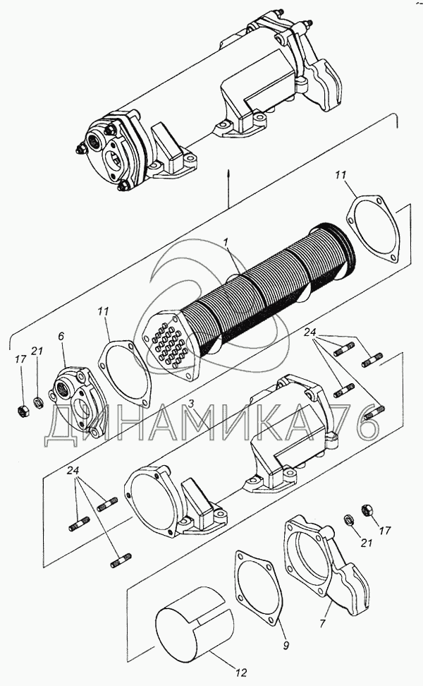 Перечень комплектующих от Теплообменник масляный на 6520