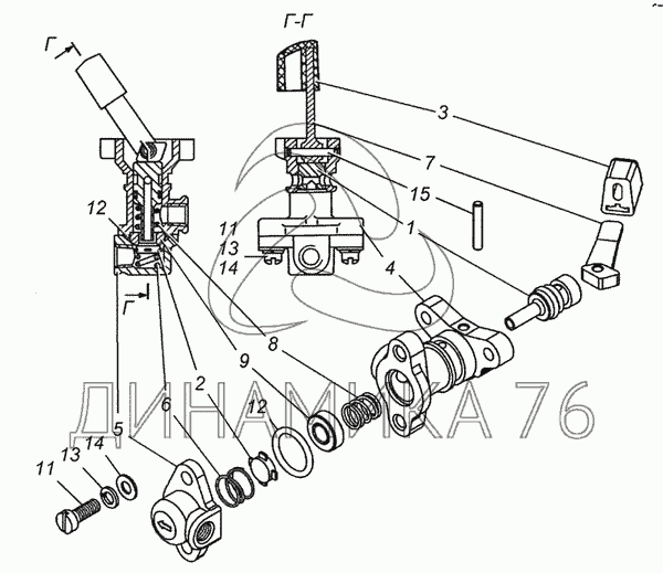 Рычаг крана включения блокировки межосевого дифференциала