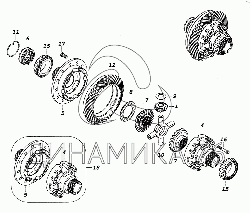Перечень комплектующих от Дифференциал моста среднего на 65226