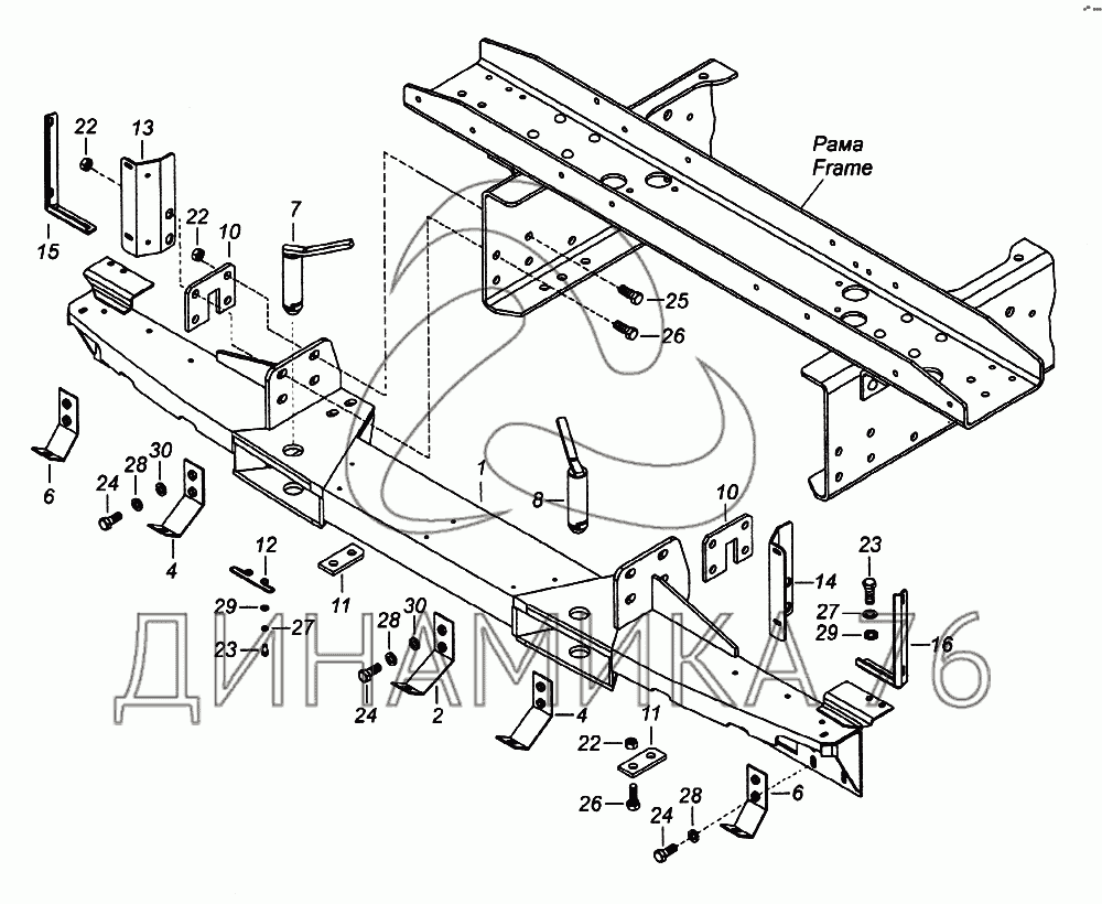 Установка буксирной поперечины на 65226 (до 2009 г.)