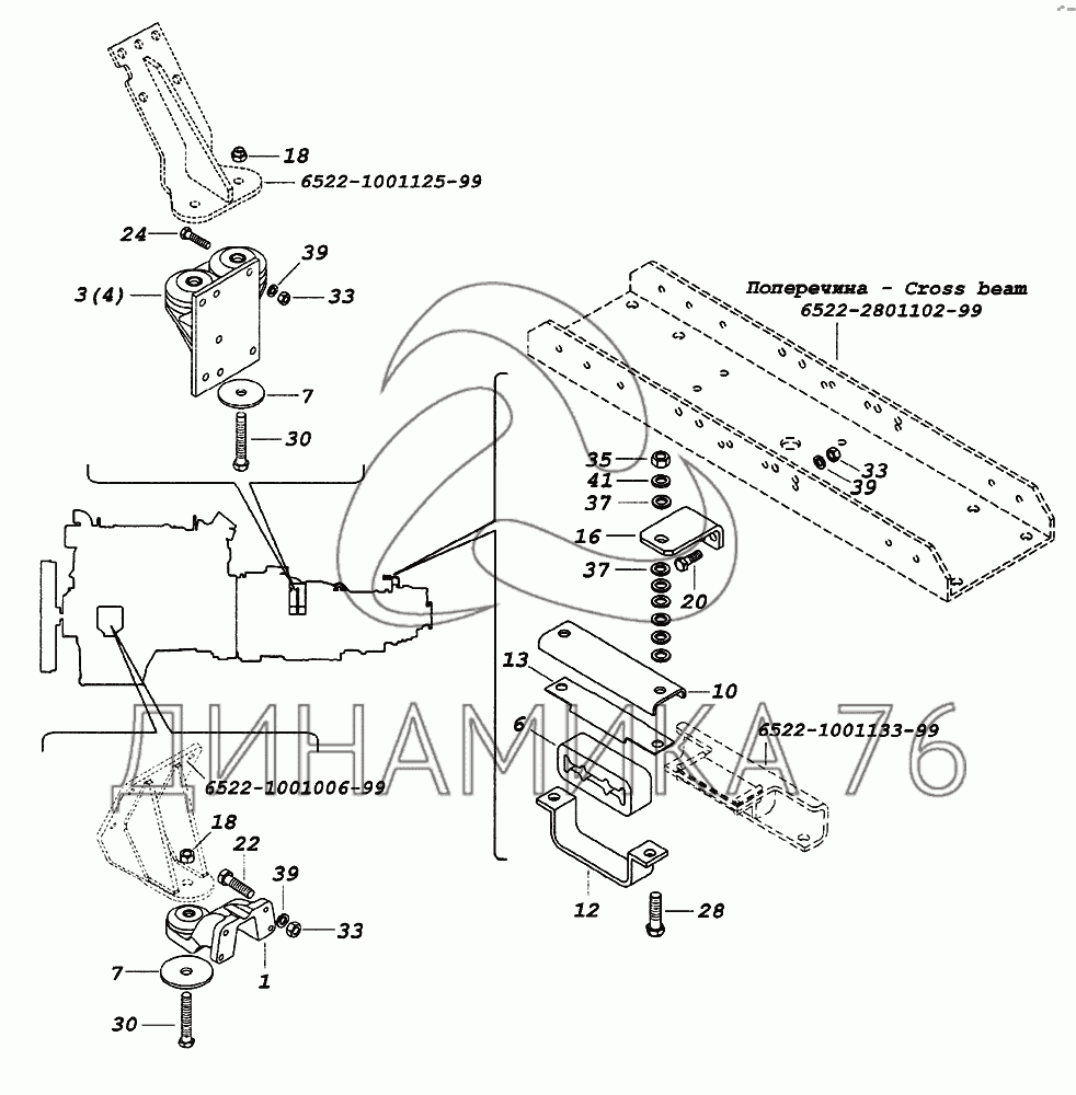 Перечень комплектующих от Установка силового агрегата на 65226