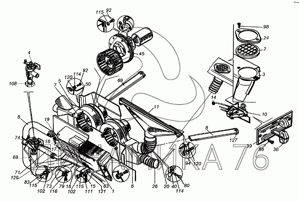 Схемы запчастей предназначены для справочных целей! Мы продаем не все запчасти от Установка системы отопления на 65226, представленные в этом списке.