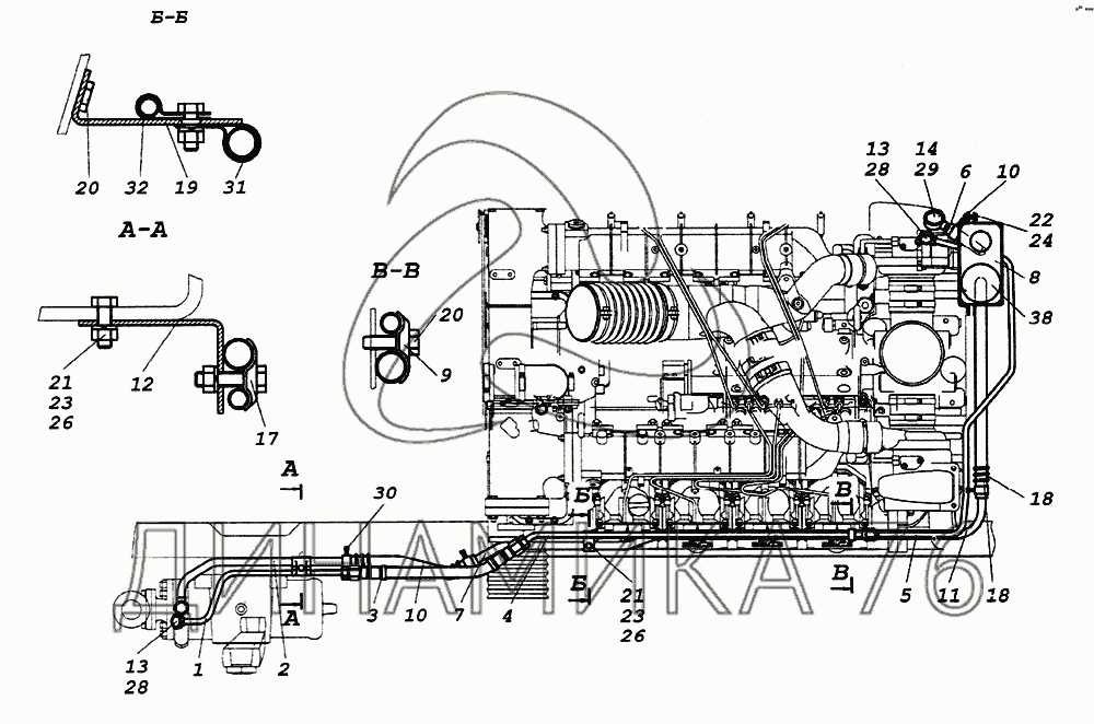 Схемы запчастей предназначены для справочных целей! Мы продаем не все запчасти от Установка трубопроводов на 65226, представленные в этом списке.