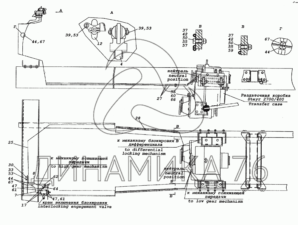 Перечень комплектующих от Установка управления раздаточной коробки на 65226