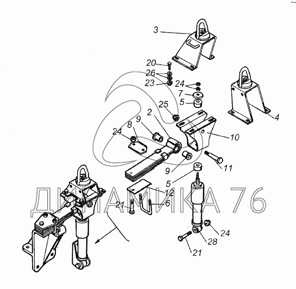 Перечень комплектующих от Установка задней подвески кабины на 65226