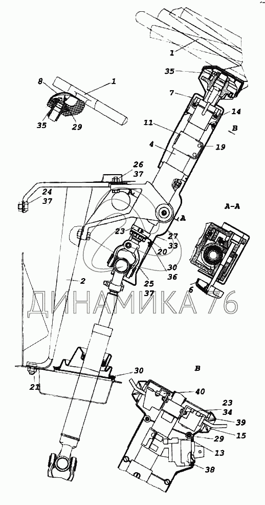 Перечень комплектующих от Установка колонки рулевого управления на 6522