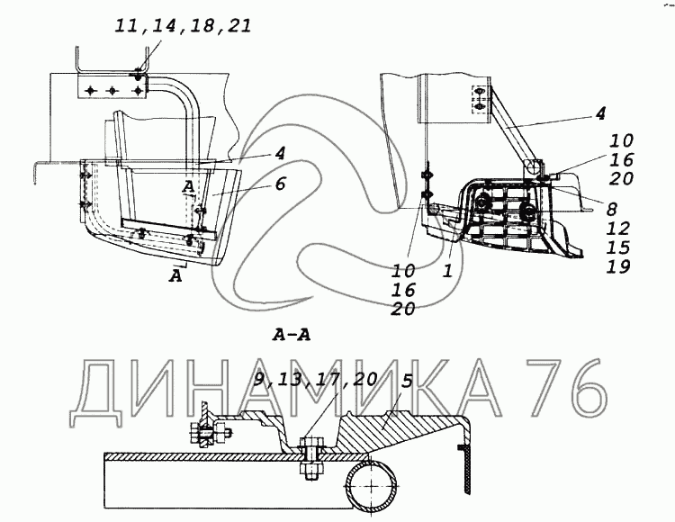 Установка нижней подножки правая/левая на 6522 (до 2005 г.)