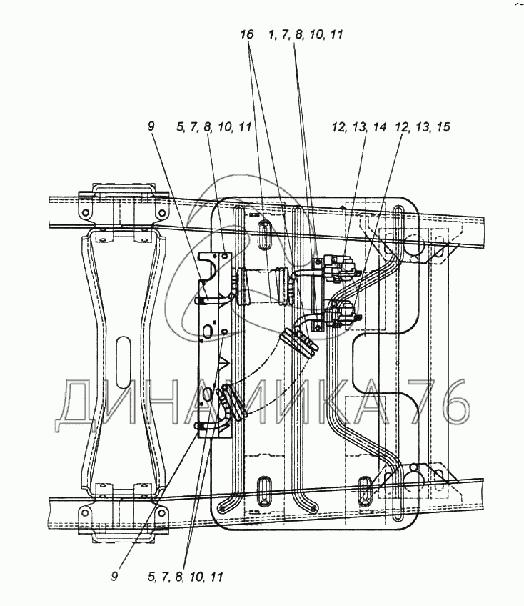 Перечень комплектующих от Установка пневмовыводов к полуприцепу на 6522