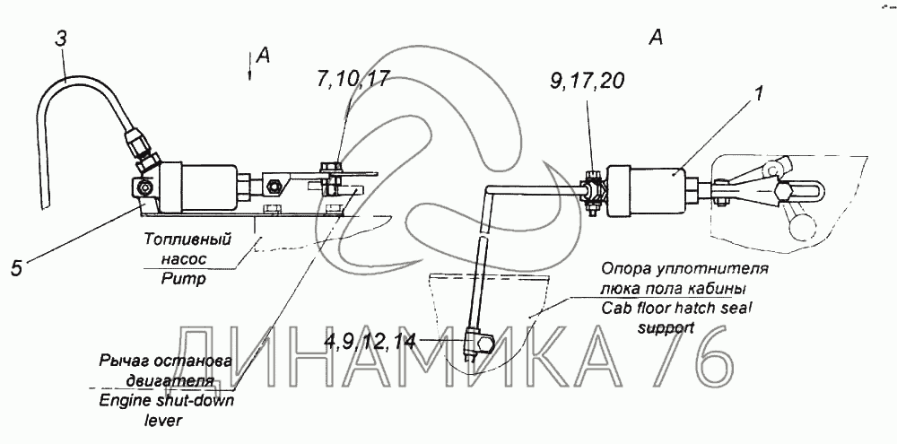Перечень комплектующих от Установка цилиндра выключения подачи топлива на 6522