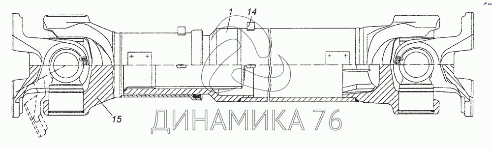 6520-2205011-11 Вал карданный среднего моста — 6522 (Euro-2, 3):