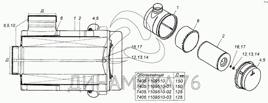 Перечень комплектующих от Фильтр воздушный в сборе на 6540