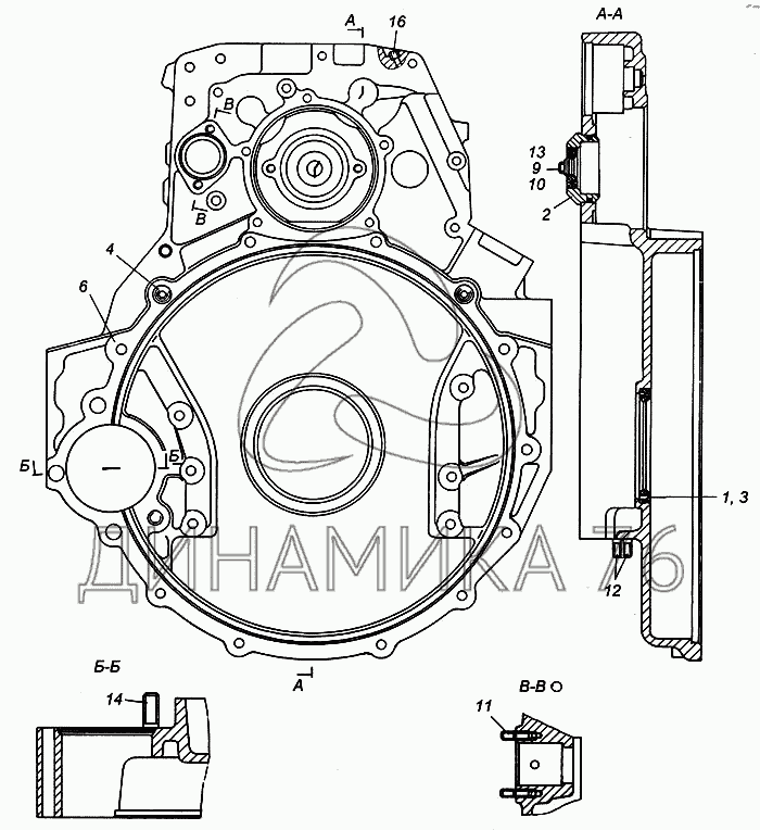 Перечень комплектующих от Картер маховика в сборе на 6540