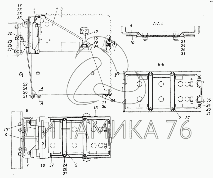 Кронштейн крепления ящика аккумуляторных батарей задний