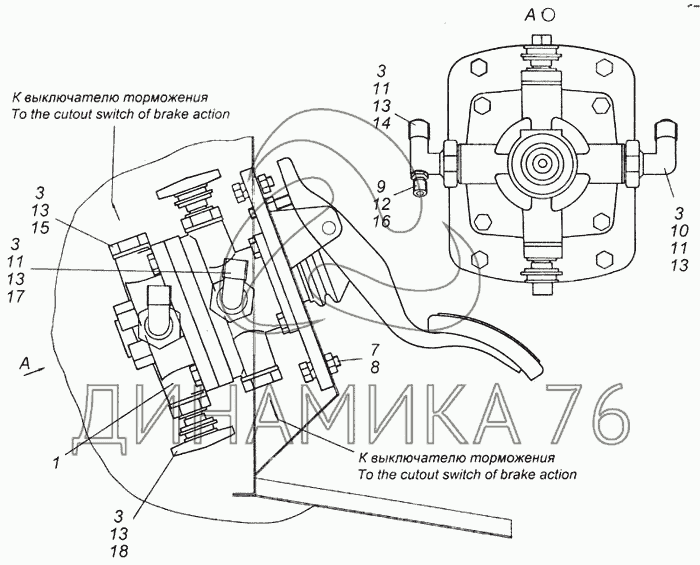 Перечень комплектующих от Установка двухсекционного тормозного крана на 6540