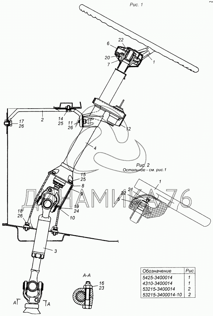 Перечень комплектующих от Установка колонки рулевого управления на 6540