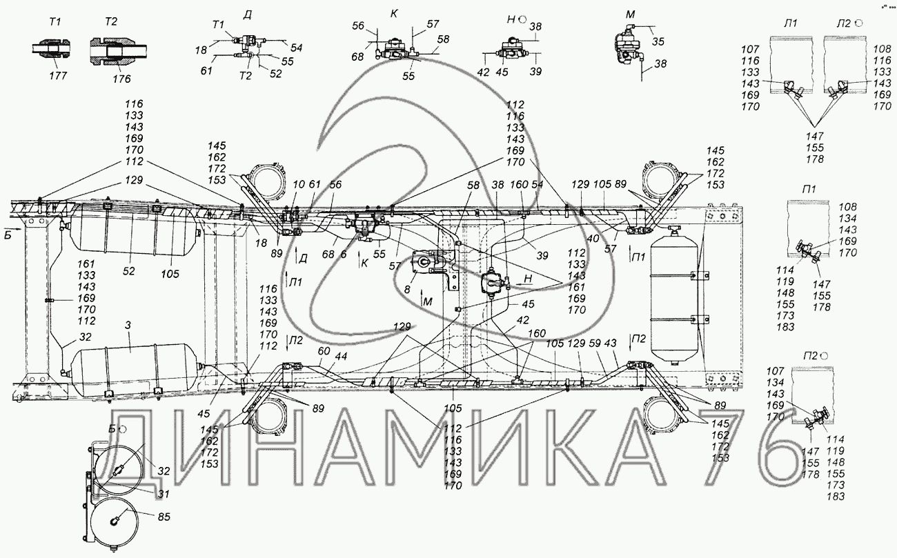 Перечень комплектующих от Установка пневмотормозов на 6540
