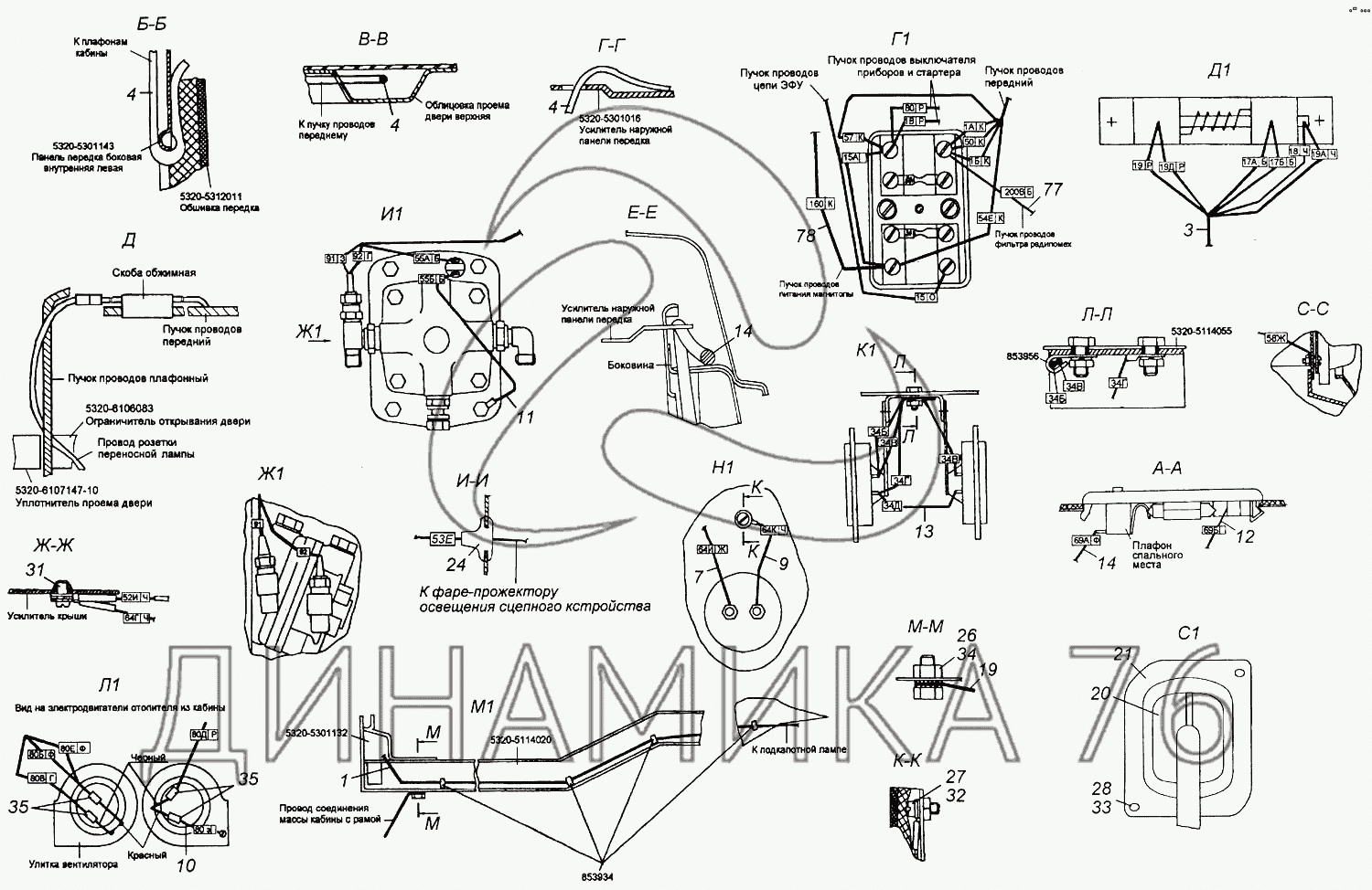Перечень комплектующих от Установка проводов на кабине на 6540