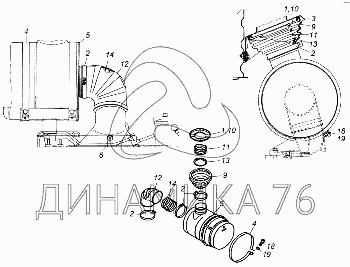 Перечень комплектующих от Установка воздушного фильтра на 6540