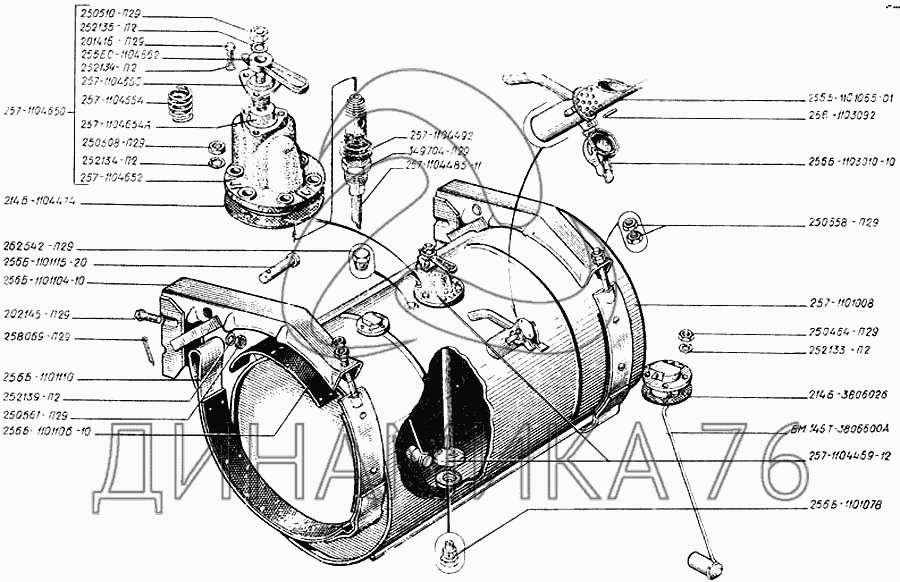 Перечень комплектующих от Баки топливные на КрАЗ-250