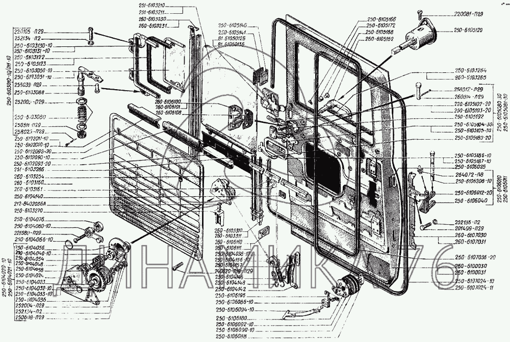 Схемы запчастей предназначены для справочных целей! Мы продаем не все запчасти от Дверь кабины на КрАЗ-250, представленные в этом списке.