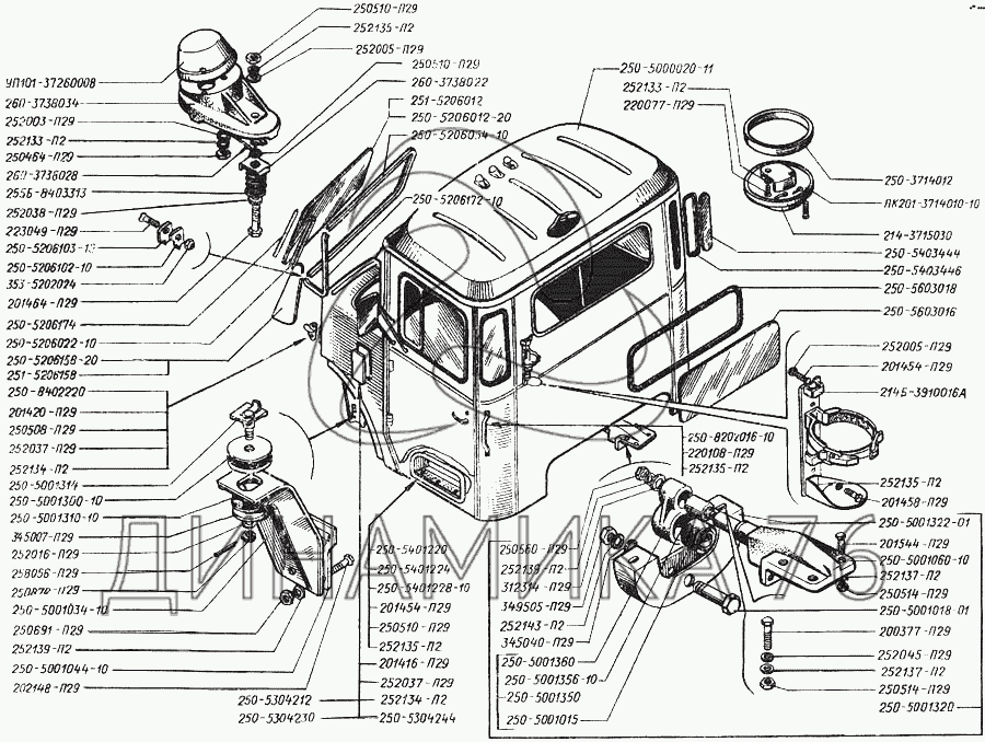Схемы запчастей предназначены для справочных целей! Мы продаем не все запчасти от Кабина на КрАЗ-250, представленные в этом списке.