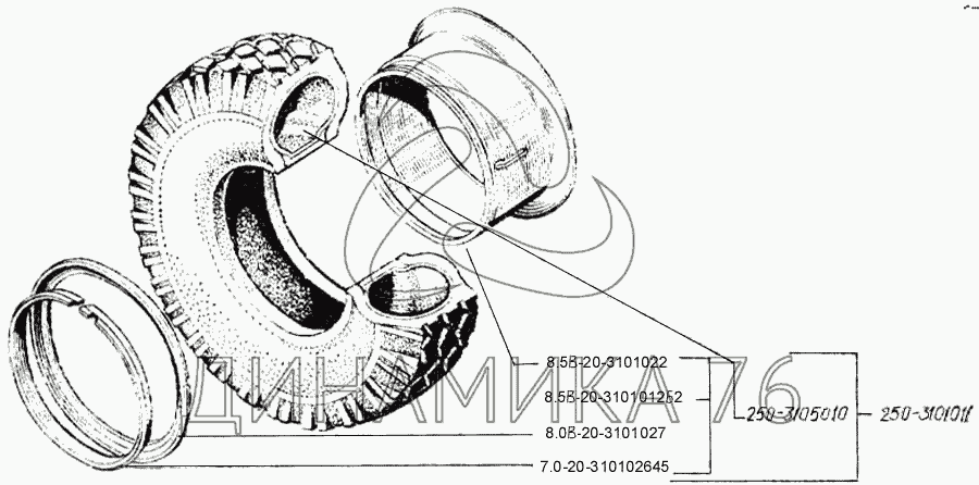 Схемы запчастей предназначены для справочных целей! Мы продаем не все запчасти от Колесо с шиной бездисковое на КрАЗ-250, представленные в этом списке.