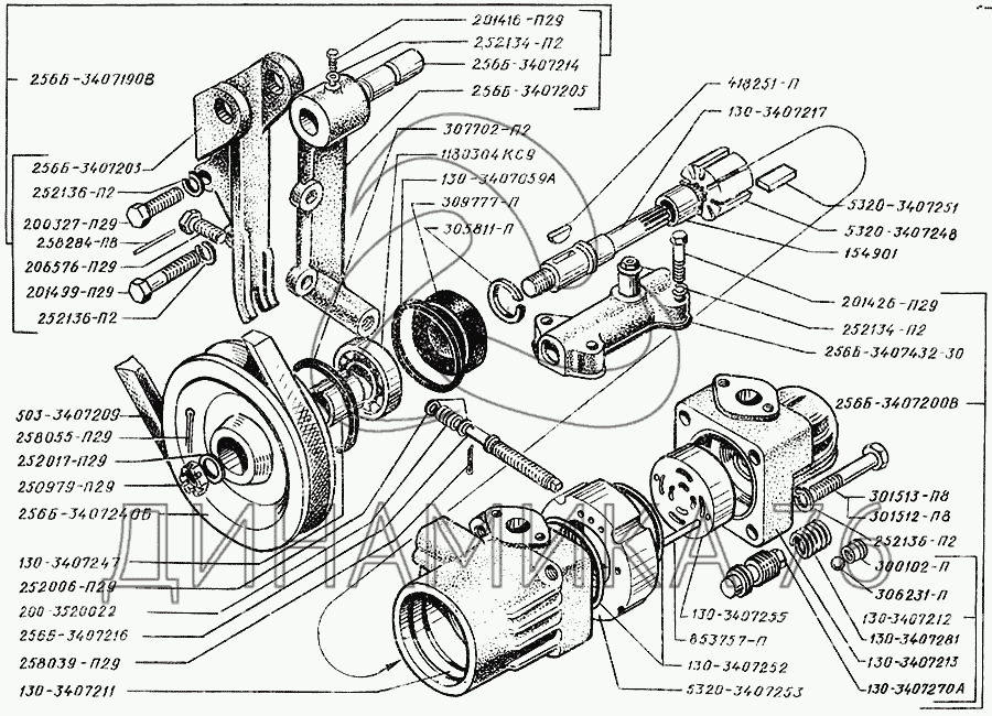 Схемы запчастей предназначены для справочных целей! Мы продаем не все запчасти от Насос масляный гидроусилителя руля на КрАЗ-250, представленные в этом списке.