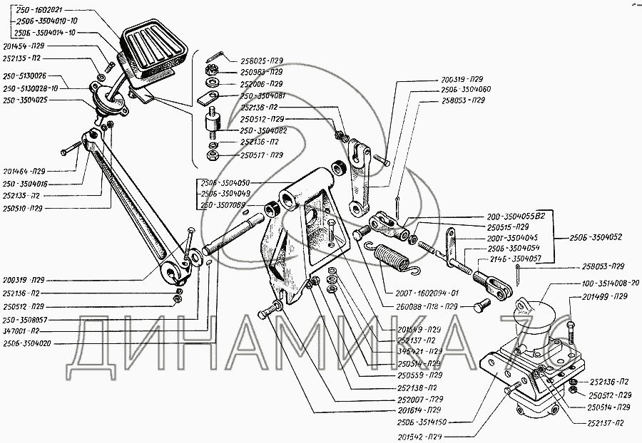 Схемы запчастей предназначены для справочных целей! Мы продаем не все запчасти от Педаль тормоза с приводом на КрАЗ-250, представленные в этом списке.