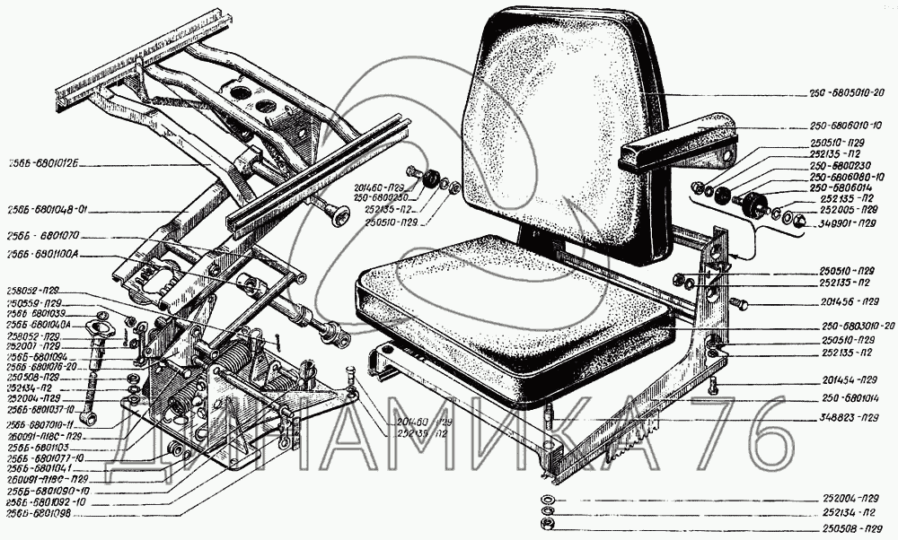 Схемы запчастей предназначены для справочных целей! Мы продаем не все запчасти от Сиденье водителя в сборе на КрАЗ-250, представленные в этом списке.