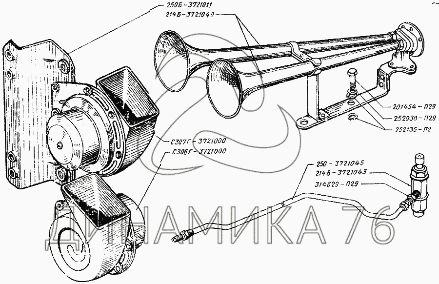 Перечень комплектующих от Сигналы звуковые на КрАЗ-250