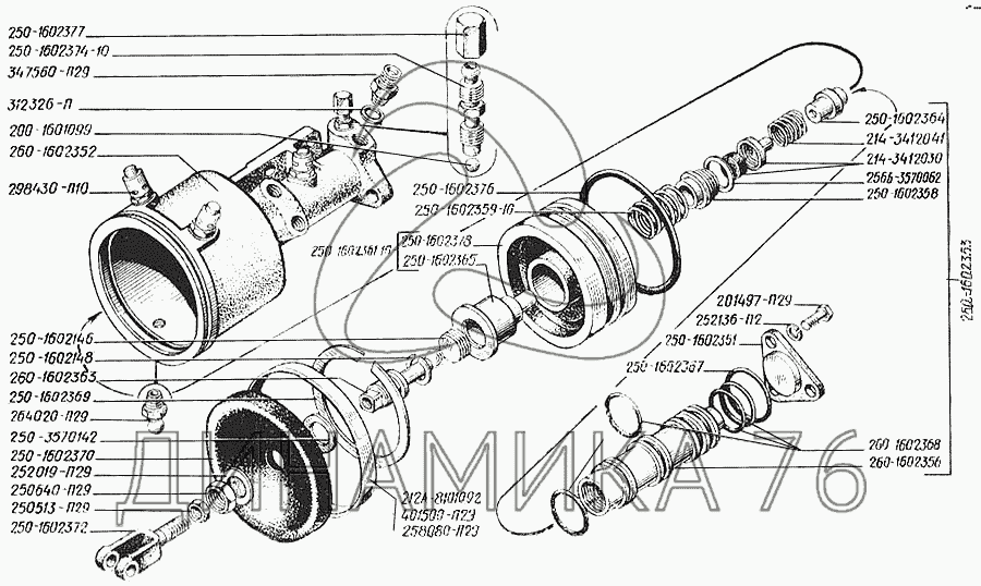 Схемы запчастей предназначены для справочных целей! Мы продаем не все запчасти от Цилиндр выключения сцепления на КрАЗ-250, представленные в этом списке.