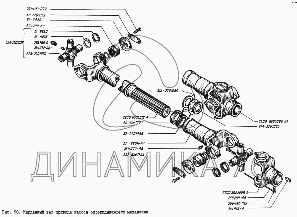 Карданный вал насоса опрокидывающего механизма — КрАЗ-256: