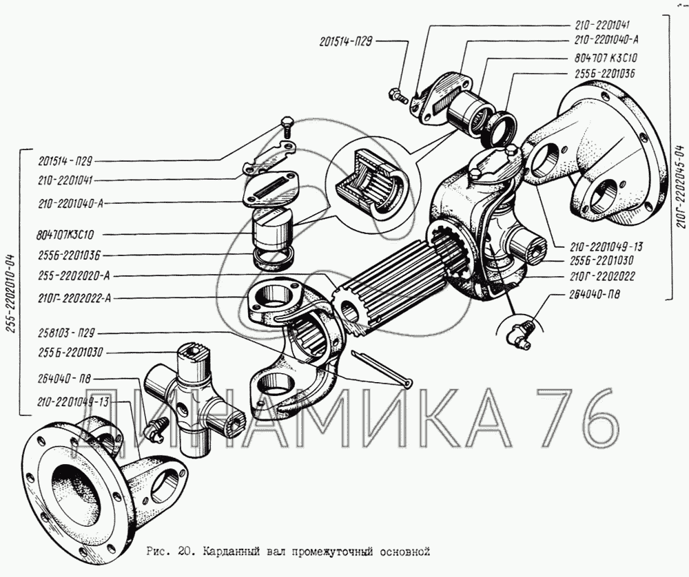 Перечень комплектующих от Карданный вал промежуточный основной на КрАЗ-256