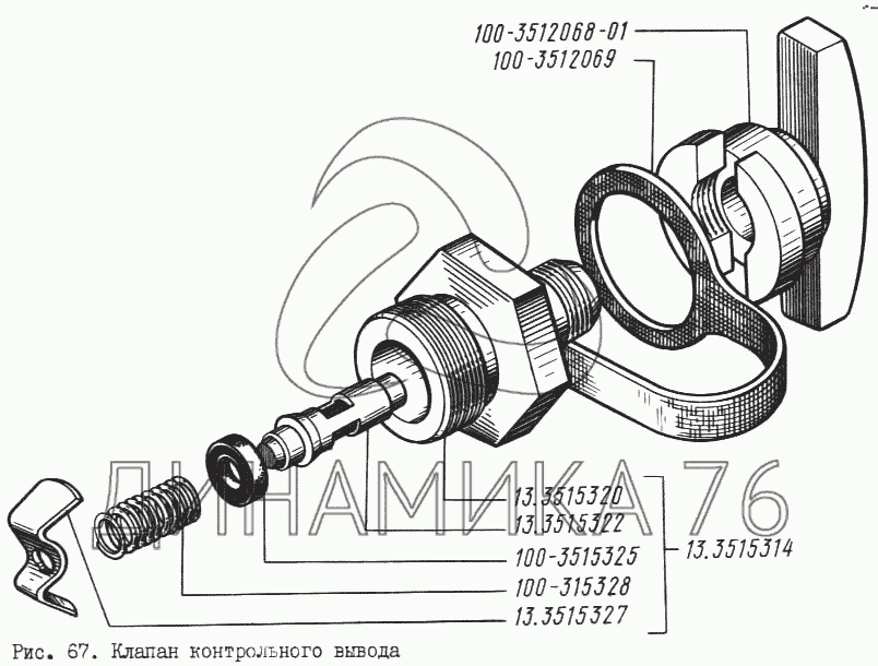 Перечень комплектующих от Клапан контрольного вывода на КрАЗ-256