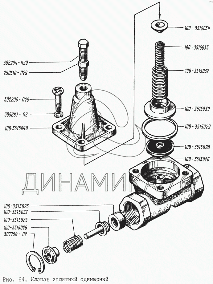 Перечень комплектующих от Клапан защитный одинарный на КрАЗ-256