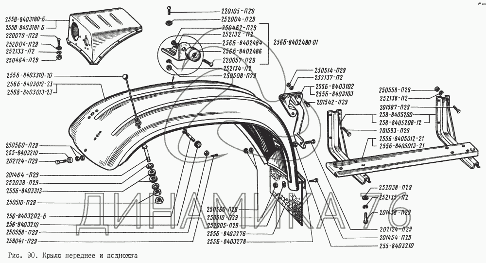 Перечень комплектующих от Крыло переднее и подножка на КрАЗ-256
