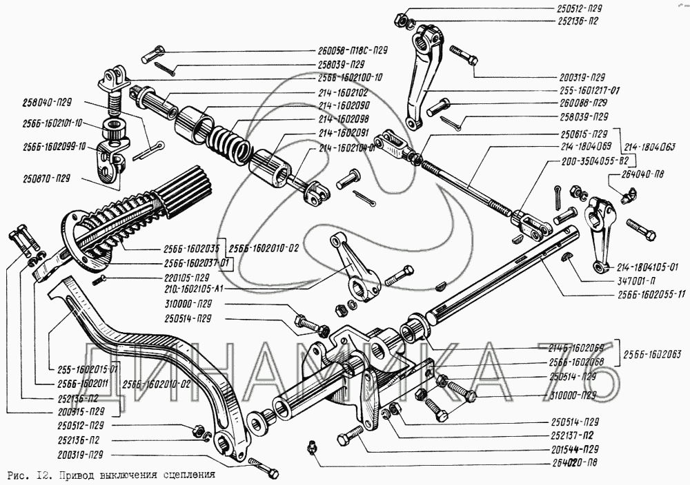 Перечень комплектующих от Привод выключения сцепления на КрАЗ-256