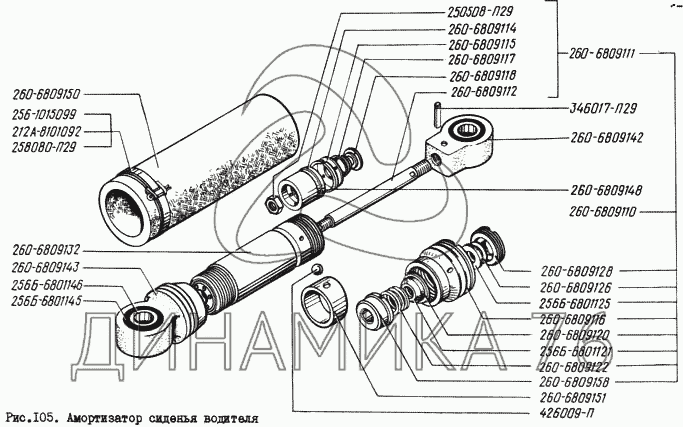 Схемы запчастей предназначены для справочных целей! Мы продаем не все запчасти от Амортизатор сиденья водителя на КрАЗ-260, представленные в этом списке.