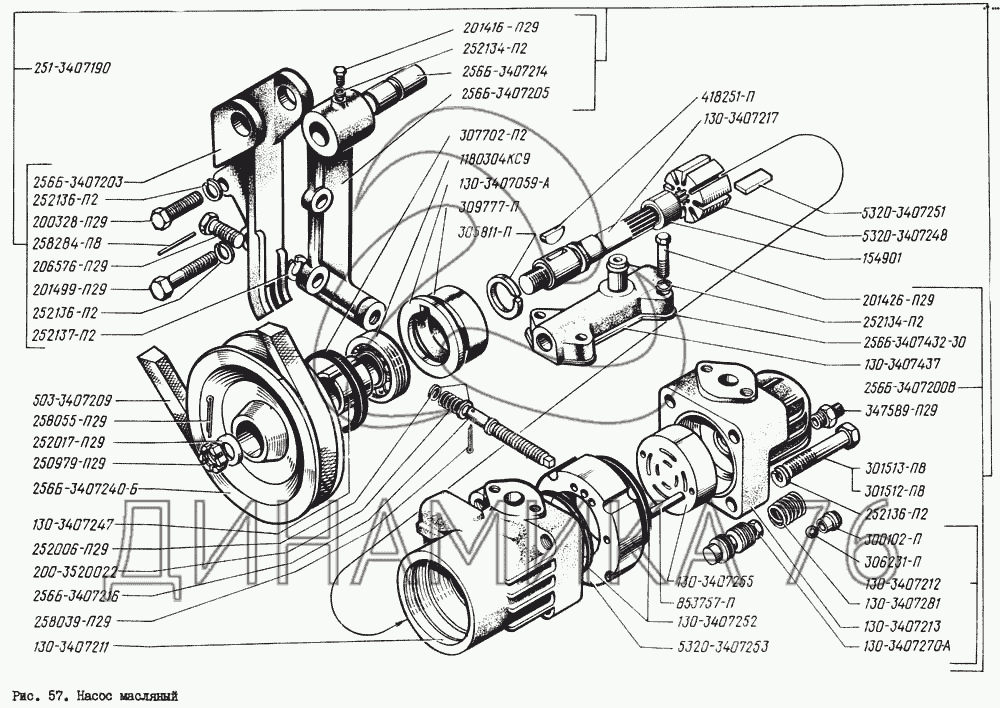 Перечень комплектующих от Насос масляный на КрАЗ-260