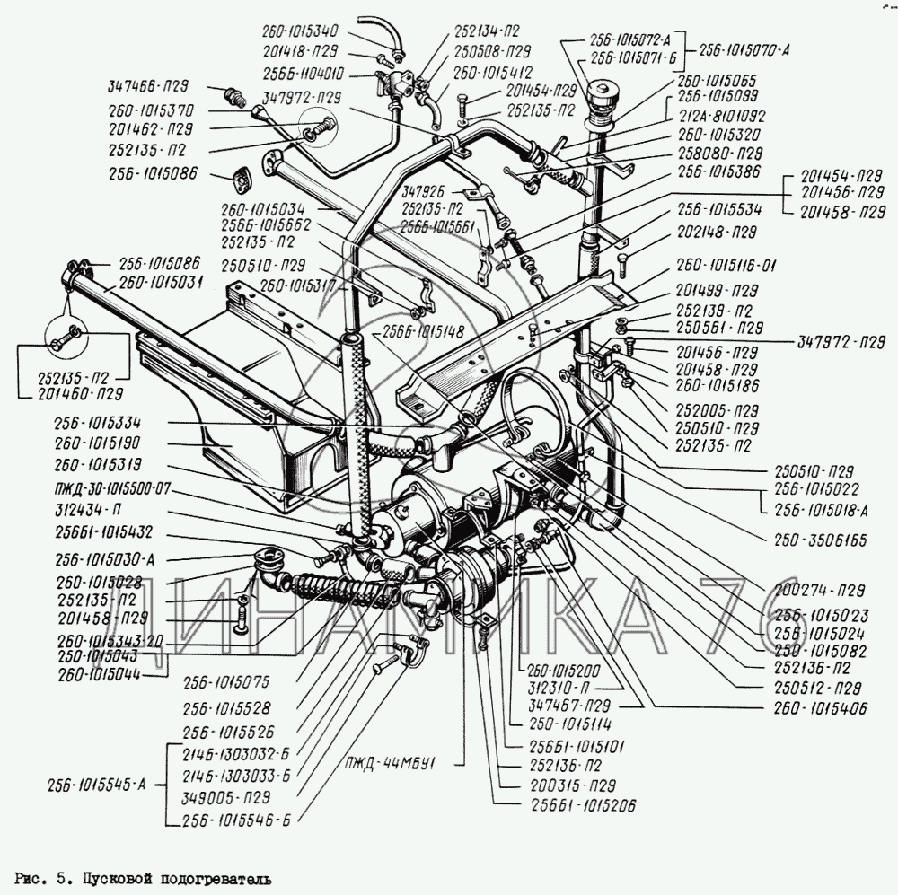 Схемы запчастей предназначены для справочных целей! Мы продаем не все запчасти от Пусковой подогреватель на КрАЗ-260, представленные в этом списке.