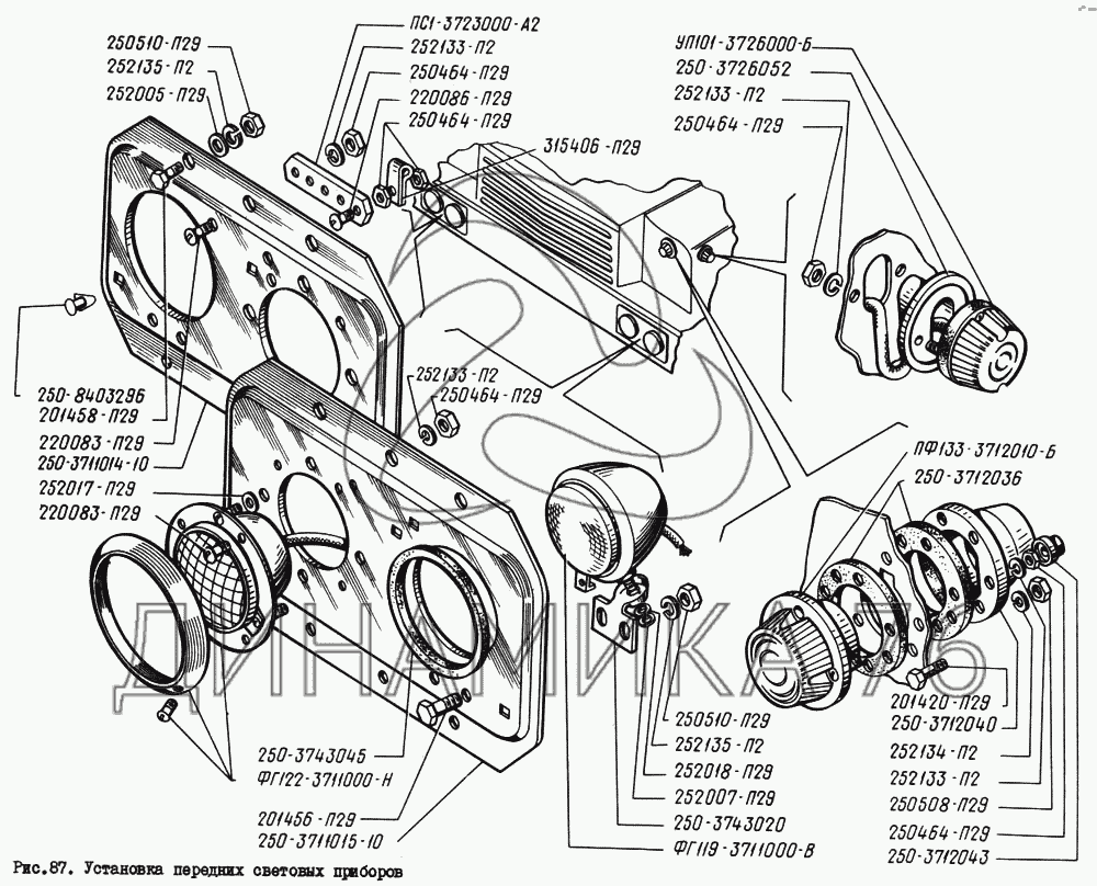 Схемы запчастей предназначены для справочных целей! Мы продаем не все запчасти от Установка передних световых приборов на КрАЗ-260, представленные в этом списке.