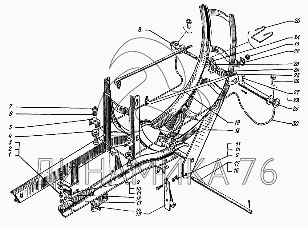 Перечень комплектующих от Держатель запасного колеса на КрАЗ-6322