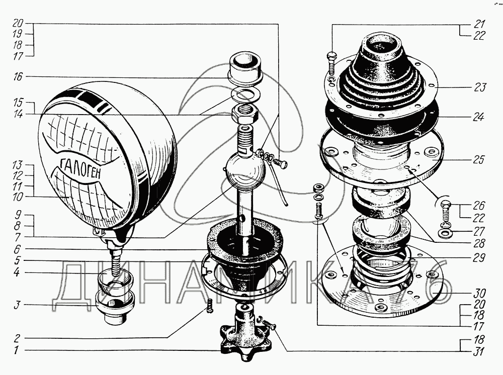 Перечень комплектующих от Фара-прожектор на КрАЗ-6322