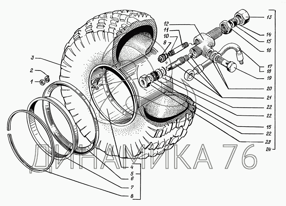 Схемы запчастей предназначены для справочных целей! Мы продаем не все запчасти от Колесо с шиной на КрАЗ-6322, представленные в этом списке.