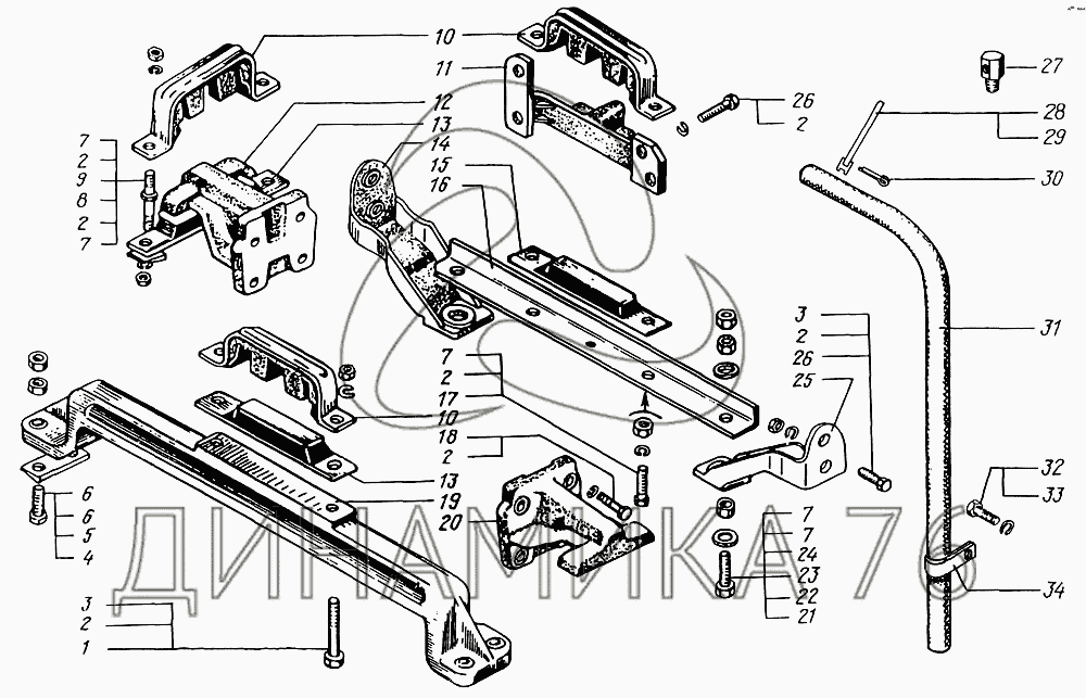 Перечень комплектующих от Крепление силового агрегата на КрАЗ-6322