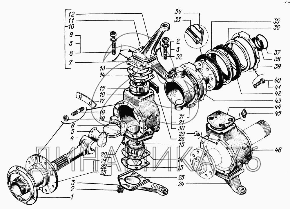 Схемы запчастей предназначены для справочных целей! Мы продаем не все запчасти от Опора шаровая переднего моста на КрАЗ-6322, представленные в этом списке.