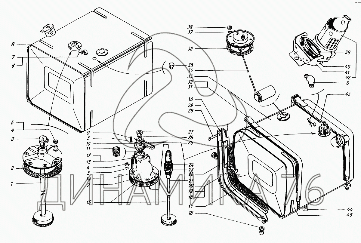 Перечень комплектующих от Баки топливные на КрАЗ-6322 (шасси)
