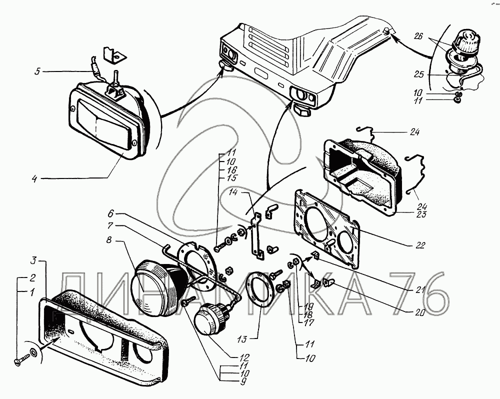 Приборы световые передние на КрАЗ-6322 (шасси) (до 2005 г.)