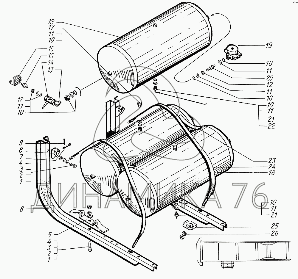 Перечень комплектующих от Ресиверы на КрАЗ-6322 (шасси)